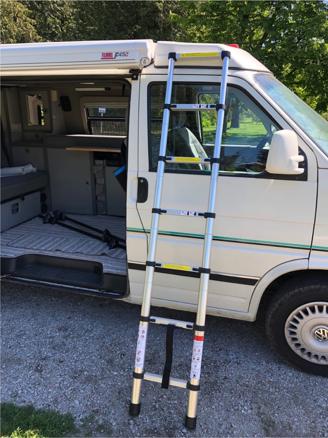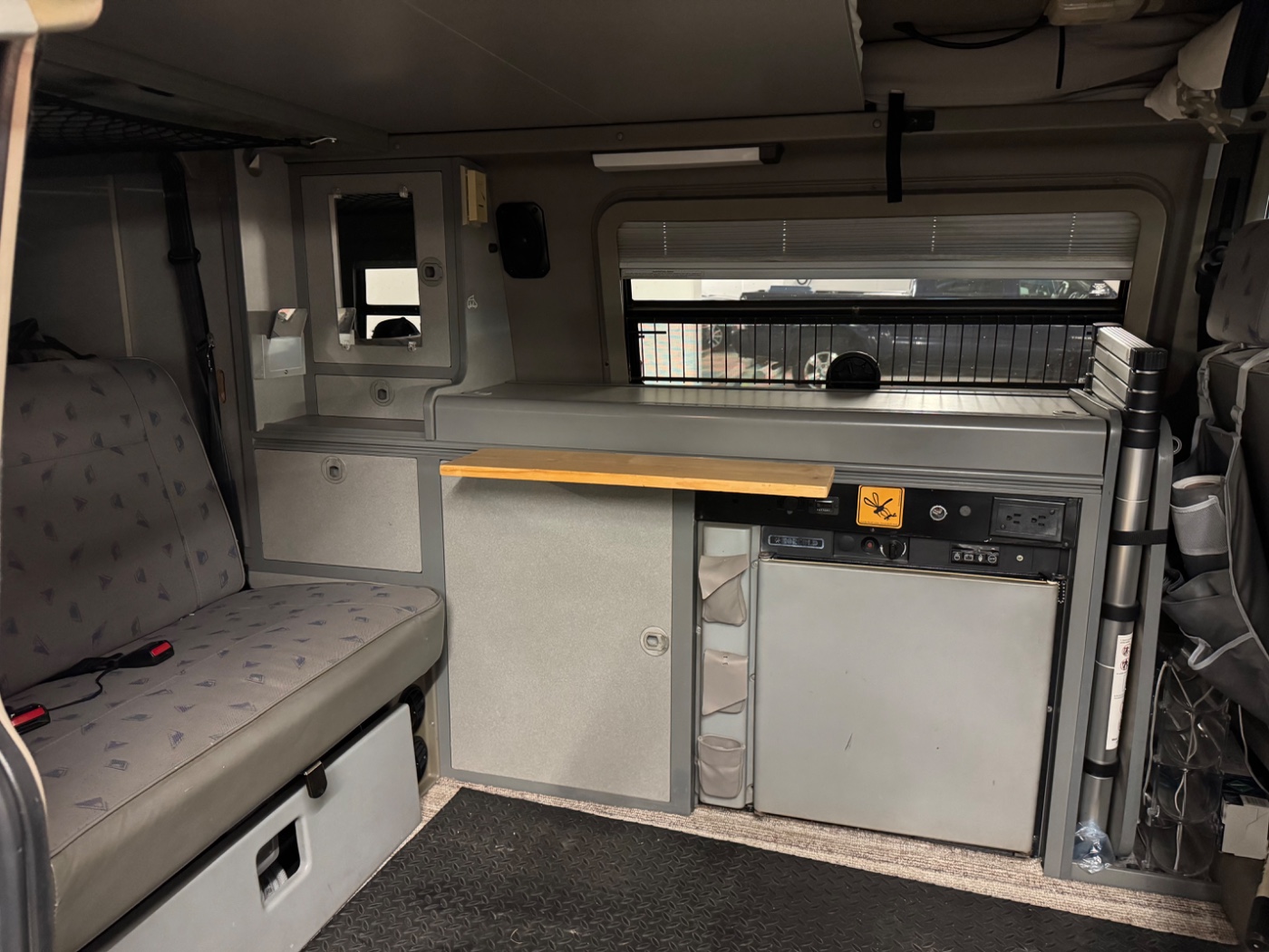 FEATURES• 2.8 litre, 6 cylinder VR6 Engine • Automatic transmission • Power steering, power mirrors, power windows • Cruise control • Air bags • Air conditioning • Sink with fresh water and grey water tanks • Sleeps 2 in pop-top and 2 on unfolded back seat • LP gas tank (for stove and furnace) • 2 ring propane stove • Ice Box – (repurposed original fridge that no longer works – requires ice in thebottom tray every ~2 days) • Propane furnace • Water hose with shower head at rear of van • Inside lights/USB/12V run on external AC power or auxiliary 12V battery • Front seats swivel 360 to face dinner table. Dining table attaches to inner counter • Removable mosquito netting for rear and side doors • Ample storage • Central locking • Front bra • Trailer hitch for bike rack • Accessories including AC power cord extension, water hose, fitted sheet, privacy curtain, kitchen wear, dishes, cutlery, fire extinguisher, CO alarm, Dometic Port-a-Potty….