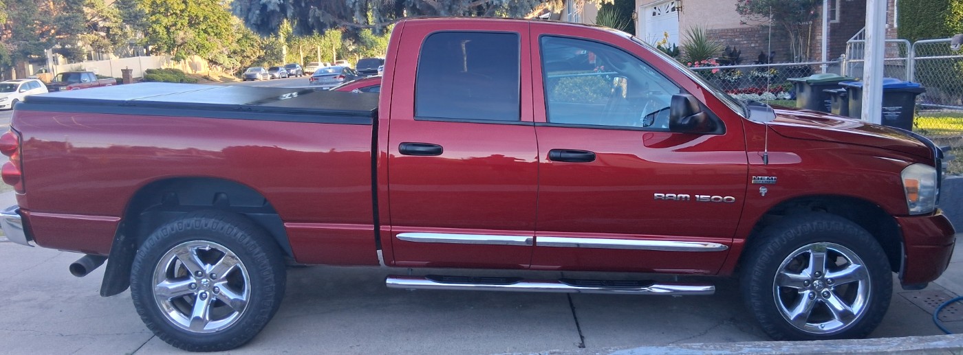 2007 Dodge Ram 1500 Laramie 4x4 5.7L Hemi V8 345hp 375lb-ft torque / Exterior Great Condition/ 20" Chrome Rims/ Hitch Cover/ Side Steps/ Spare Tire & Jack / Interior Great Condition/ Leather Seats in Mint Condition/ Power Steering /Power Windows and Mirrors/ A.C./ Power Seats/ Heated Seats/ Interior Ambient Lighting / 198000kms ( low for the yr, average 11,000kms/ yr) / lots more.../ Great Reliable Powerful Truck